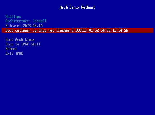 Recently, the open-source network boot firmware, iPXE, integrated LoongArch patches, which signifies its official support for LoongArch. Users can use iPXE to boot LoongArch-based operating systems over a network.
