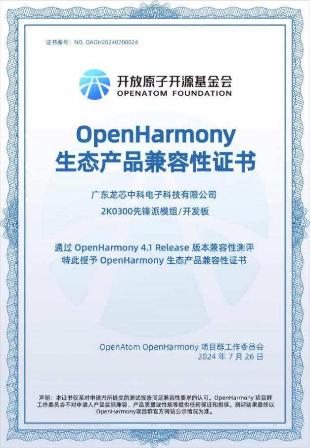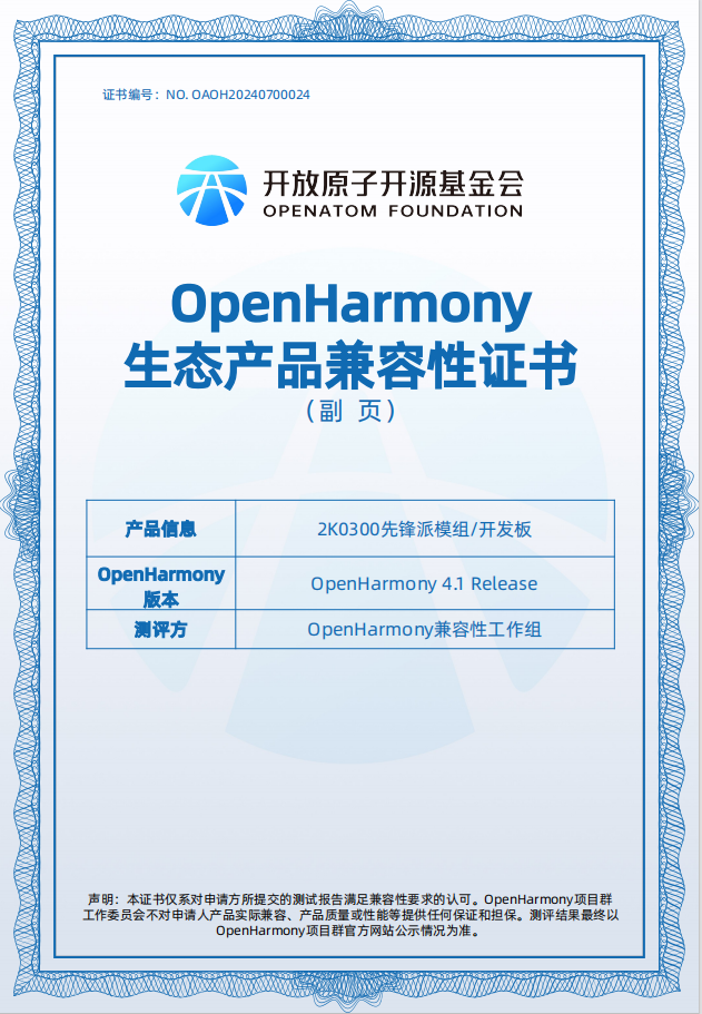 龍芯2K0300先鋒派OpenHarmony認(rèn)證