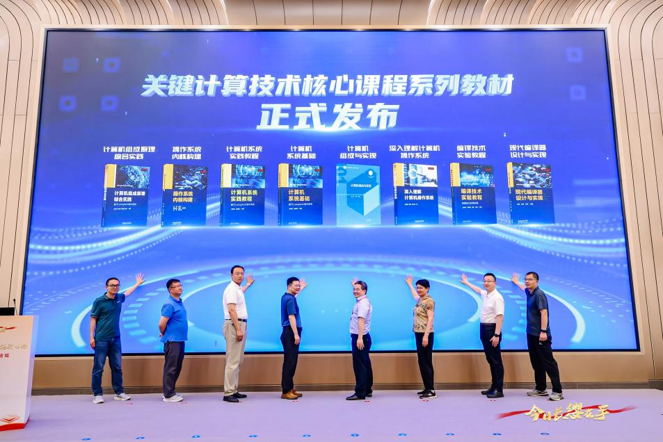 論壇現(xiàn)場,龍芯中科聯(lián)合北京航空航天大學(xué)、南京大學(xué)、中國科學(xué)技術(shù)大學(xué)、西北工業(yè)大學(xué)、南開大學(xué)等眾多行業(yè)專家共同編寫的關(guān)鍵計(jì)算技術(shù)核心課程系列教材正式發(fā)布,為龍架構(gòu)國產(chǎn)根技術(shù)提供核心課程教學(xué)資源。